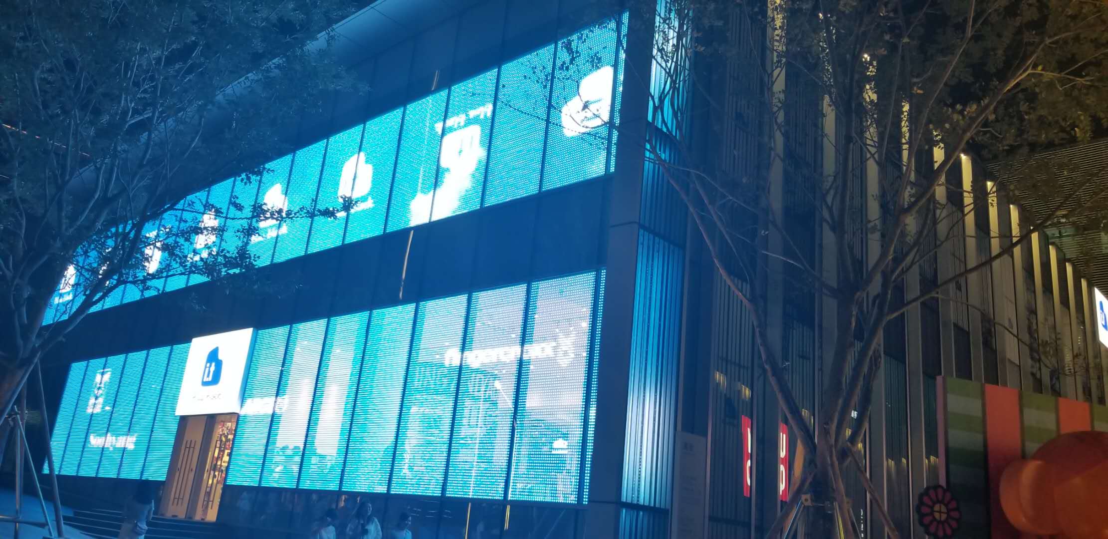 深圳P50格柵透明屏項目由上海智彩科技設計、安裝