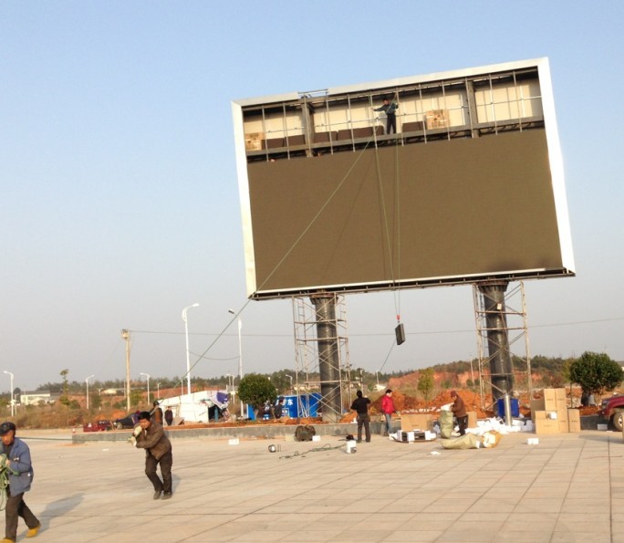 湖南岳陽汨羅火車站東廣場顯示屏P10全彩屏由上海智彩科技承制。